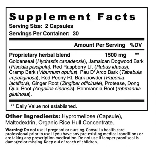 Cramp Bark - relaxes the uterus and relieves occasional menstrual cramping